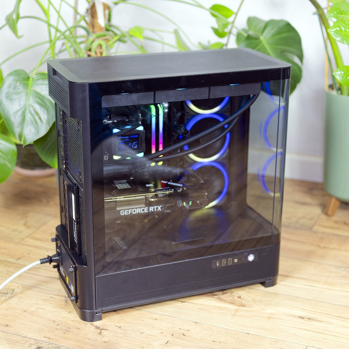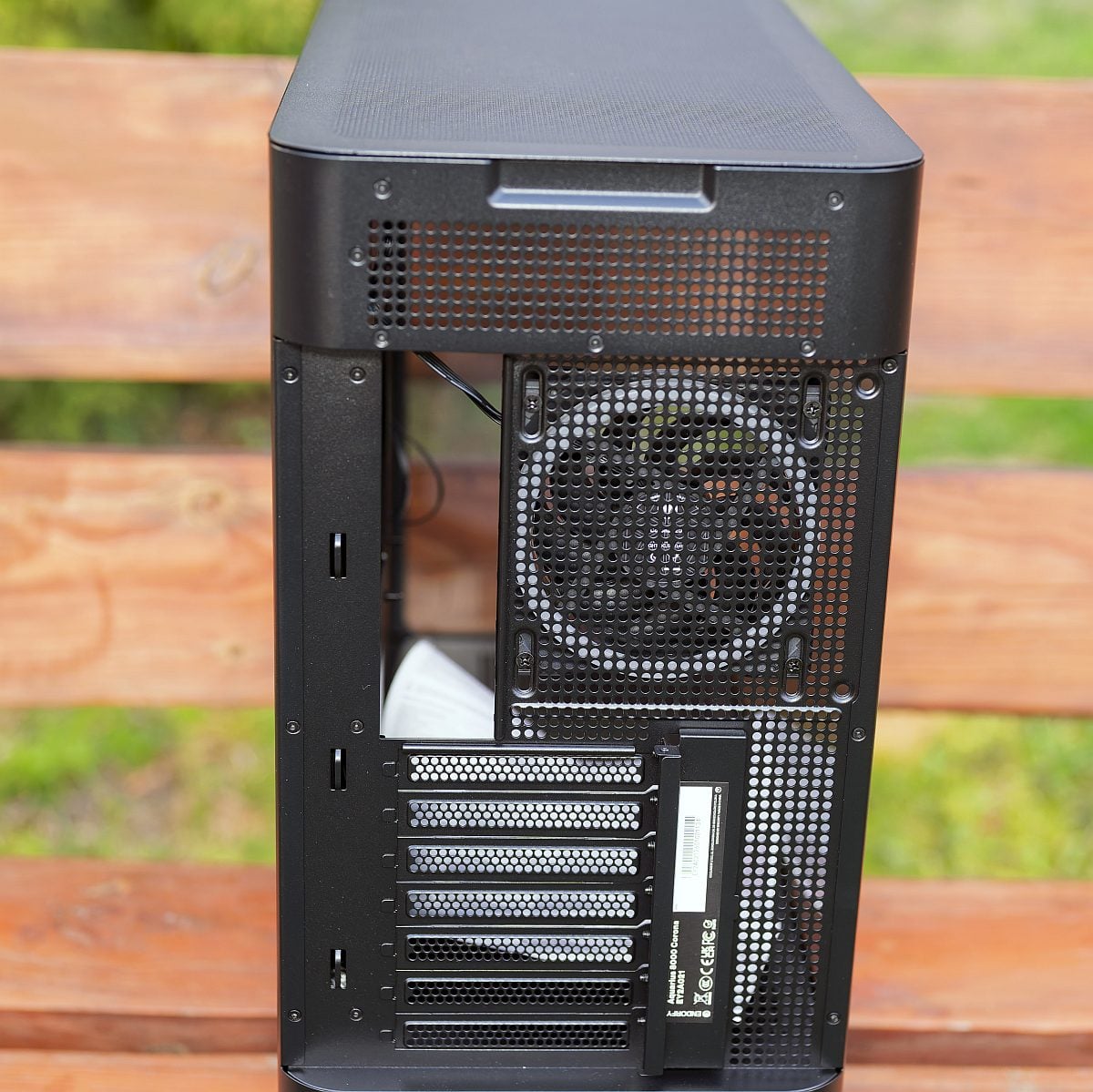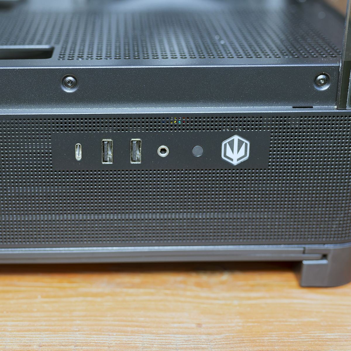 The side-mounted I/O panel is one of the smarter practical decisions in the design. When a case is intended to sit on a desk and be seen, easy access matters, and placing USB-C, USB-A, audio, power, and reset controls at the side makes daily use noticeably more convenient.