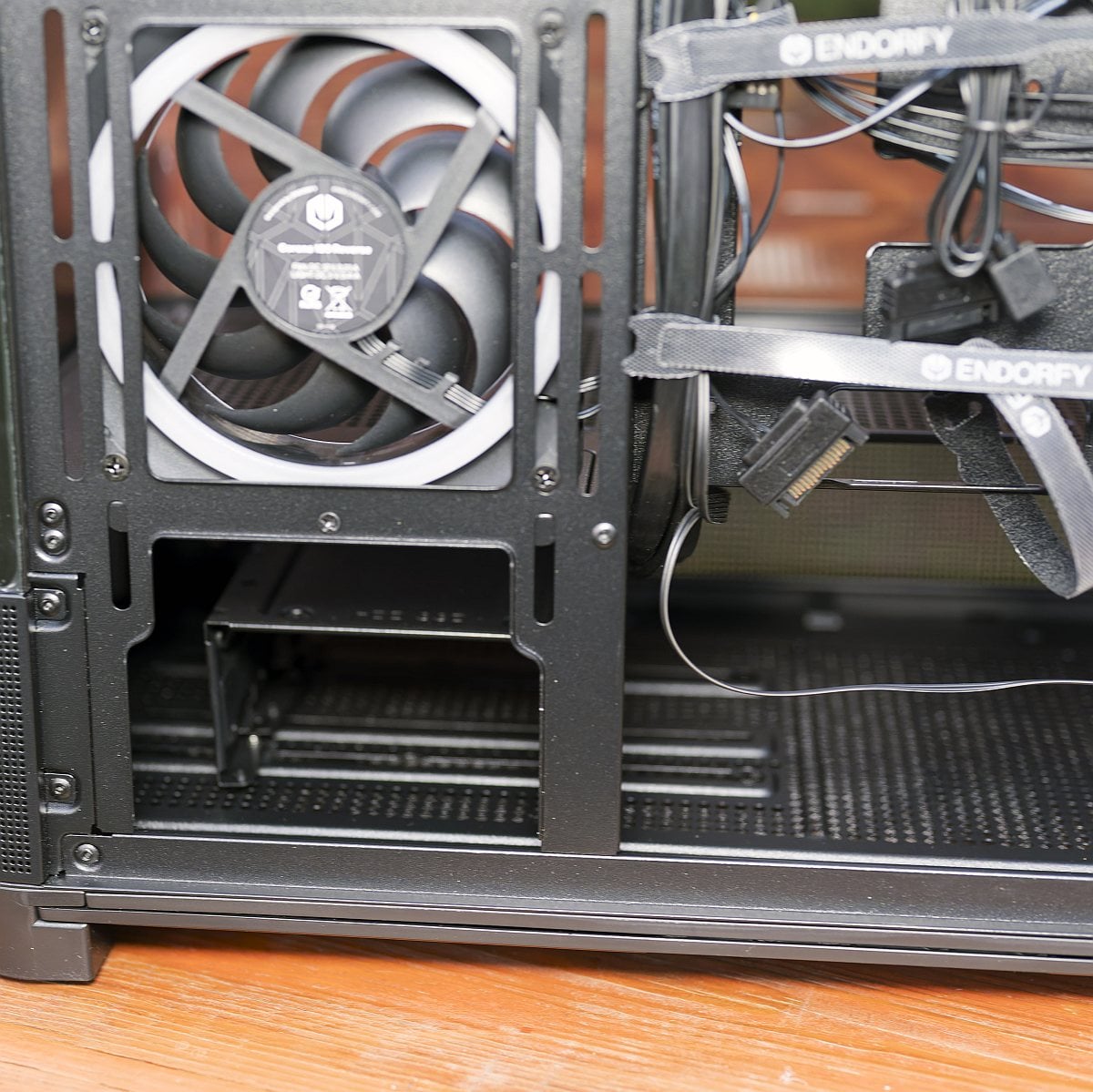 The adjustable HDD cage adds flexibility, which is more valuable than it sounds in a case like this. If you want to prioritise cable space, radiator clearance, or simply a cleaner, more visually appealing interior, you are not locked into a fixed storage layout.