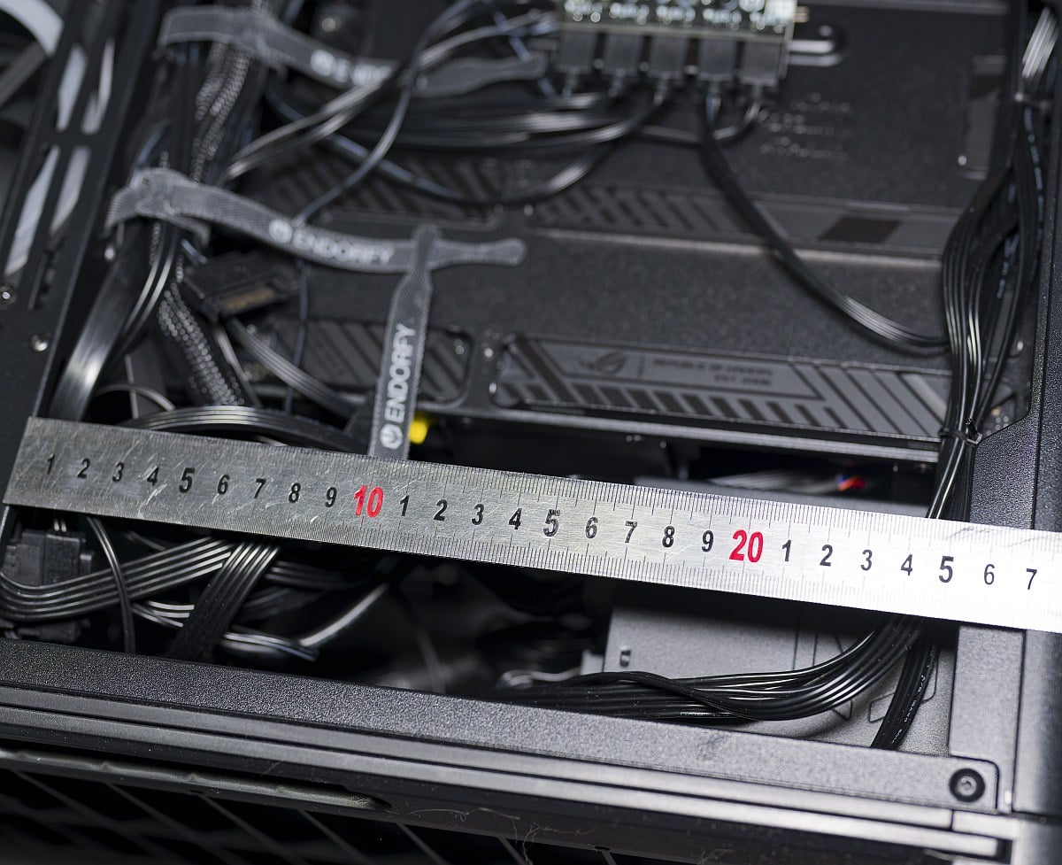 As for the PSU space, there’s plenty of it, and even powerful, 200mm-long units should fit without hassle. Regarding the space for the cables, there’s 30mm clearance, which is handy because it means you are not pushing and pulling them to fit. It’s little touches like these that makes the Aquarius 8000 good to work with.