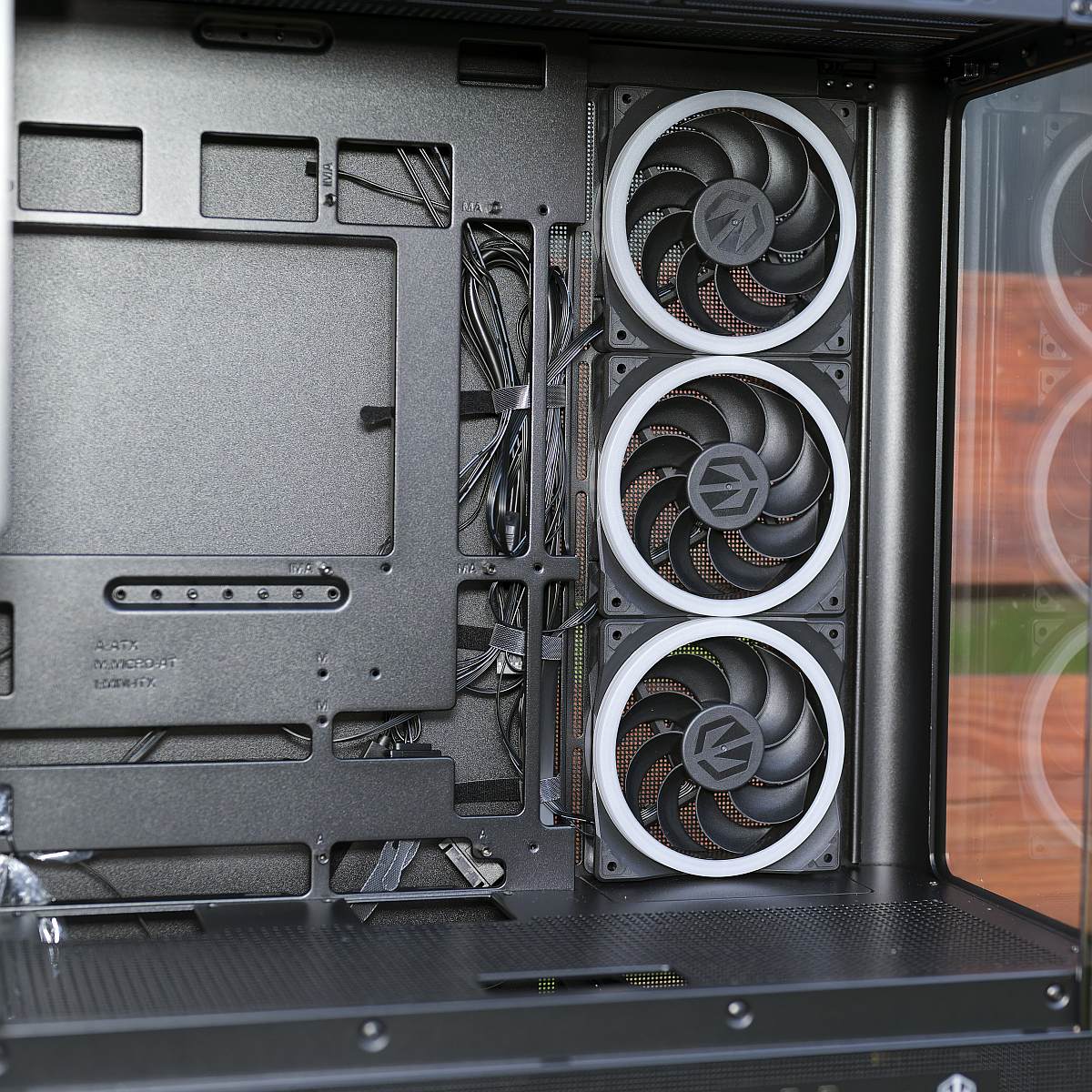 What makes the chassis compelling is the balance between volume, compatibility, and presentation. You get the visual drama of a panoramic glass case, along with the clearances and mounting support that make it a genuinely usable high-end enclosure.