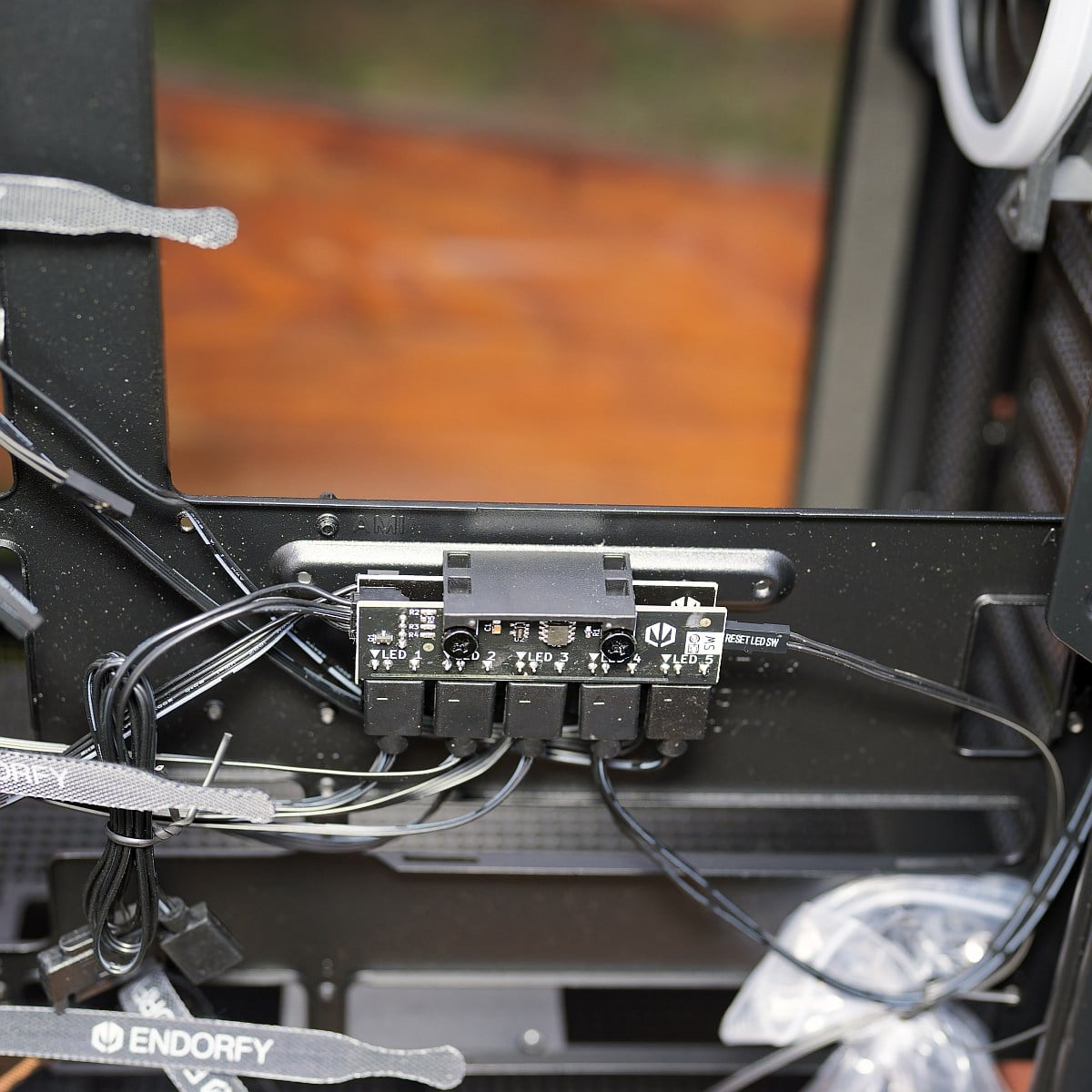 The bottom-mounted PSU chamber helps the case feel more conventional in the best possible way. It separates the power supply from the main chamber, improves the layout’s visual cleanliness, and keeps the build process more manageable when working with longer cables or bulkier hardware. You can see the ARGB/PWM hubs; one is occupied by the pre-installed fans, while the other is at your disposal.
