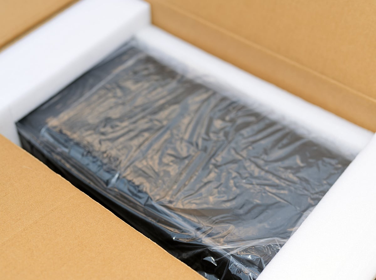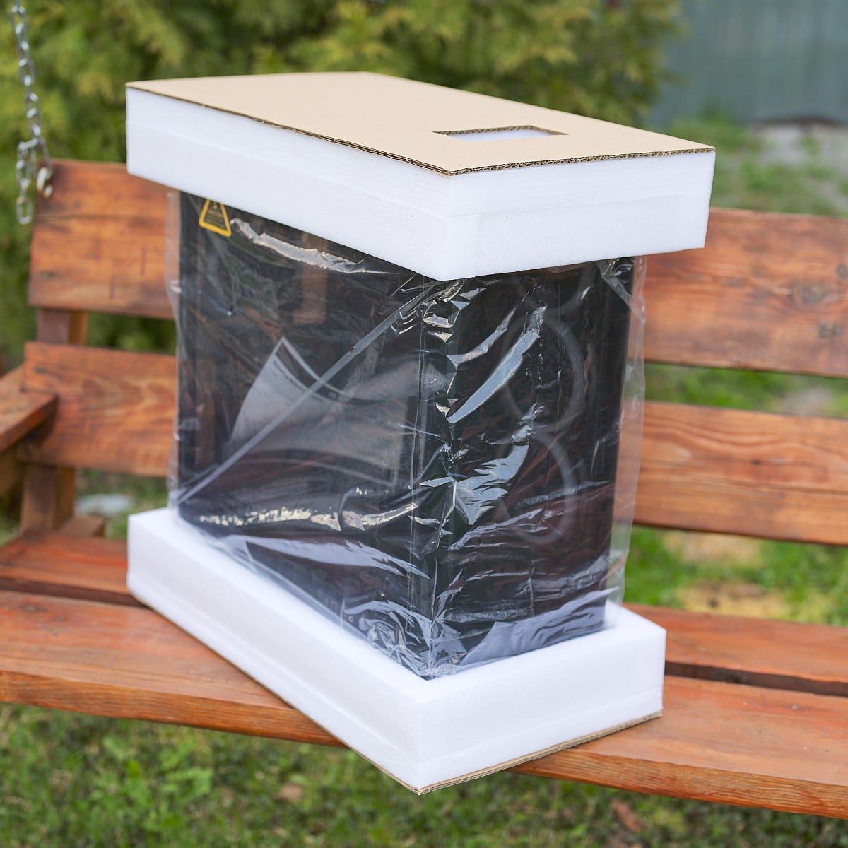 The package weighs 11kg, with 9.5kg net for the chassis, so it’s not as heavy as you might think. The box is rather plain brown, with a printed picture of the chassis on both main sides.