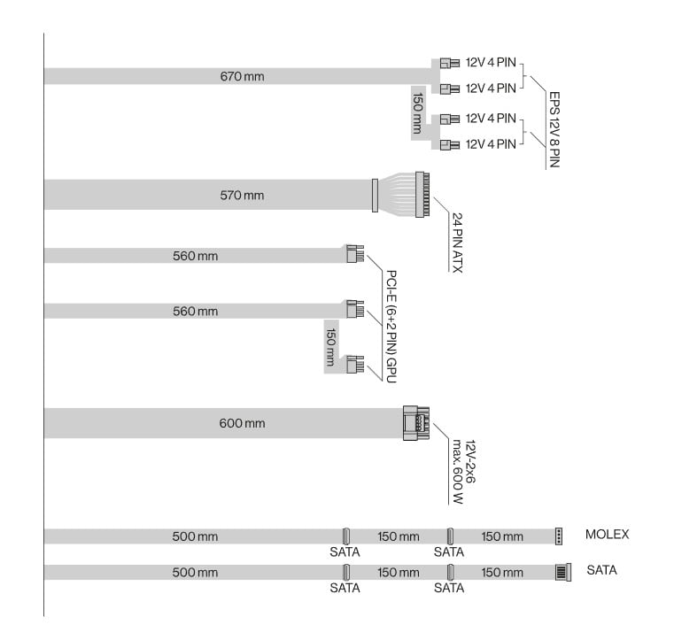 - Native 12V‑2×6 600W PCIe 5.1 cable for next‑gen GPUs (it’s 450W for the 550/650W variants)