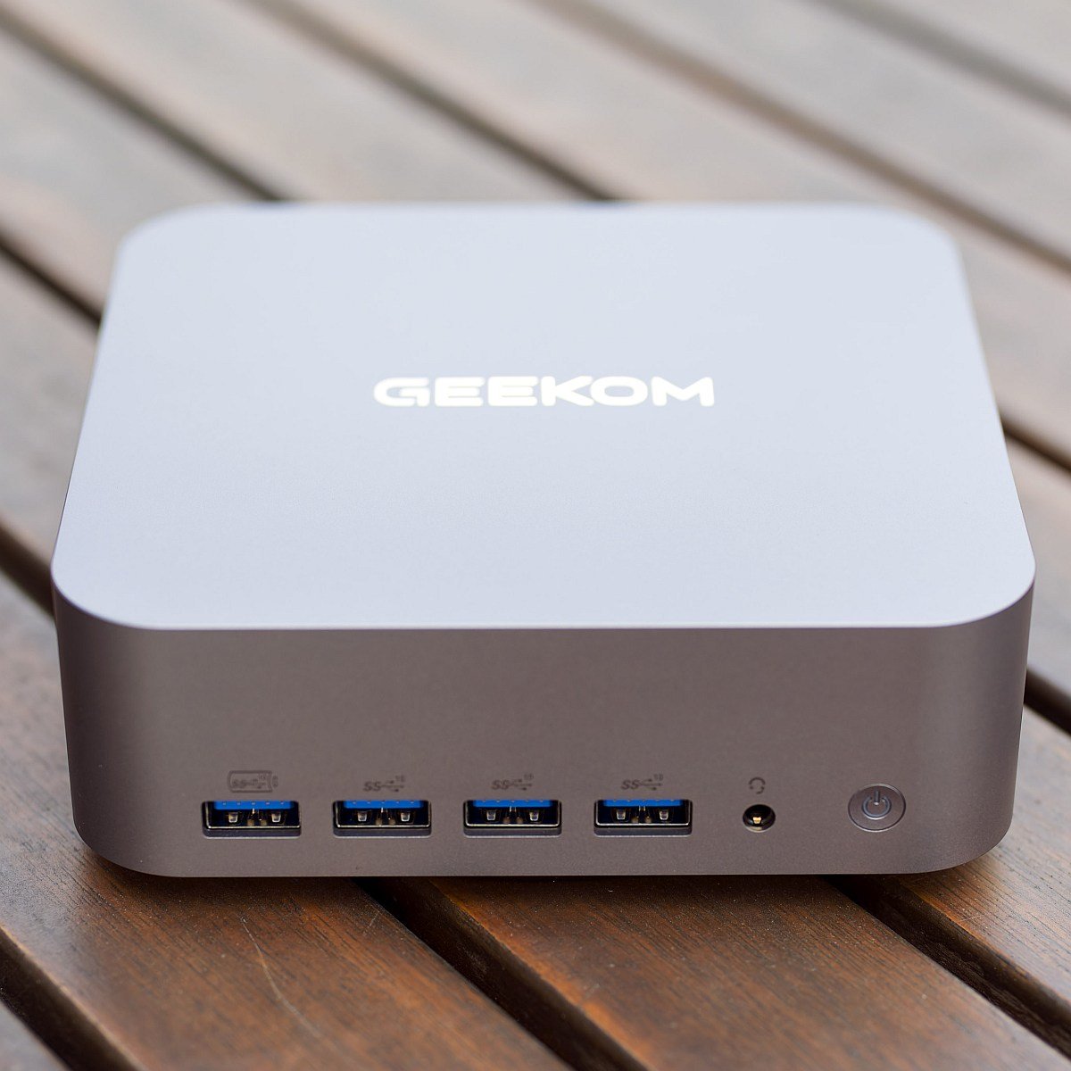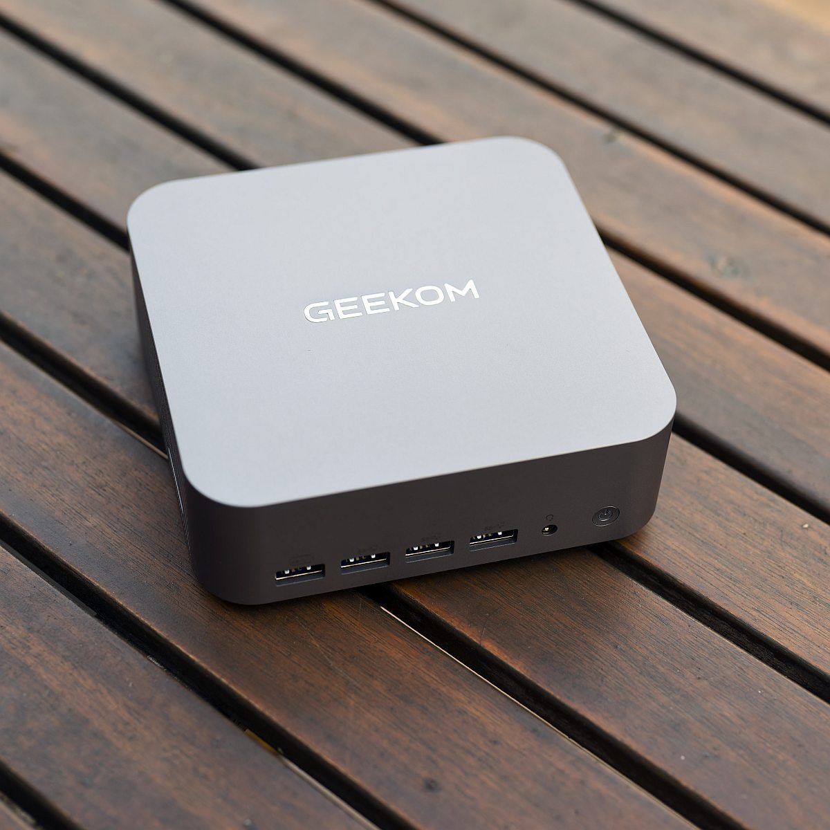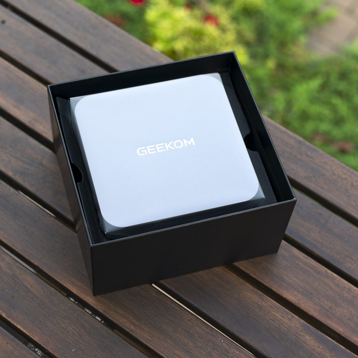 The anodised metal chassis, finished in a subtle matte grey, feels both tough and elegant, with reinforced corners and clean seams that resist fingerprints. The subtle Geekom logo and minimalist design ensure it fits well into both professional and home environments, while the smart ventilation design maintains efficient airflow without compromising aesthetics.