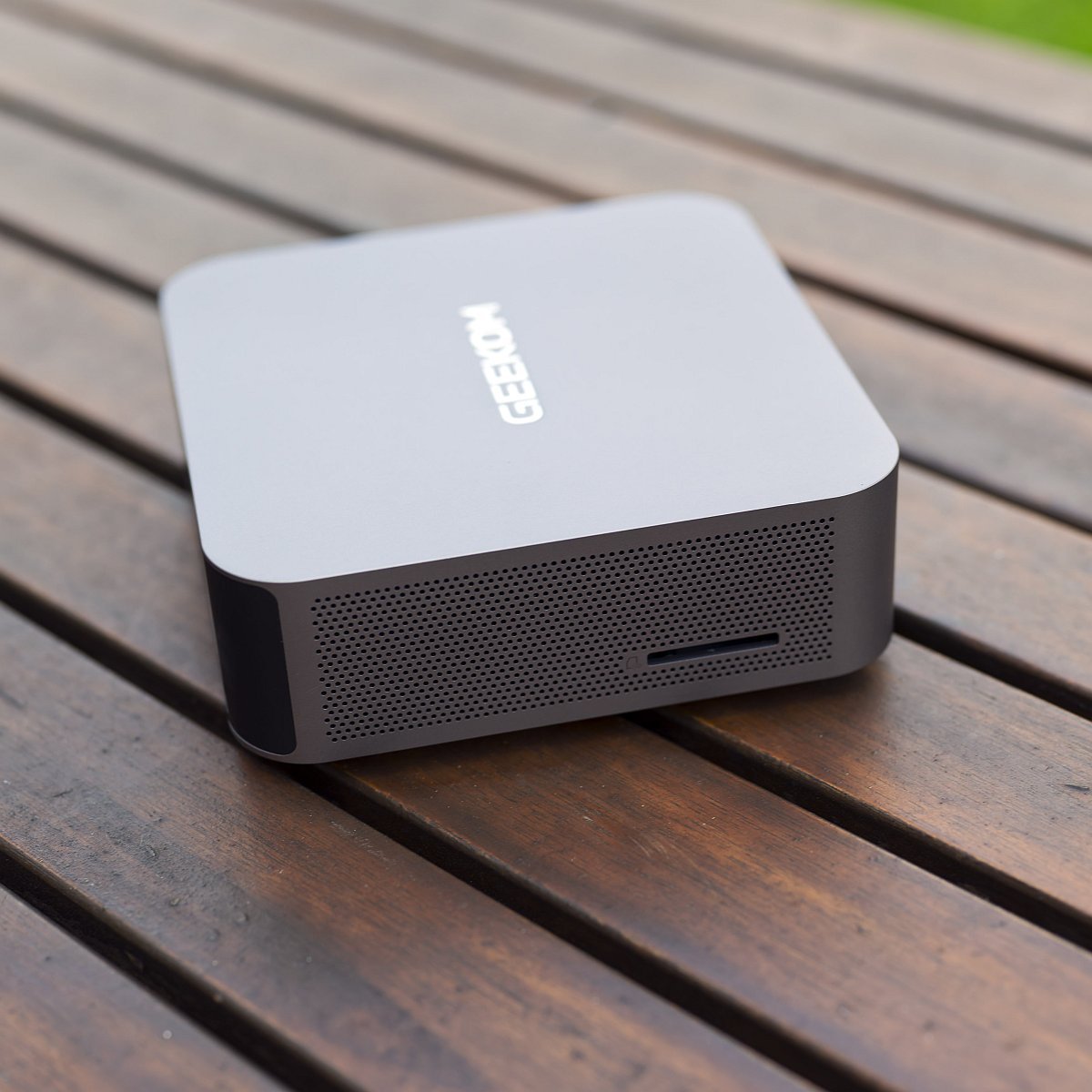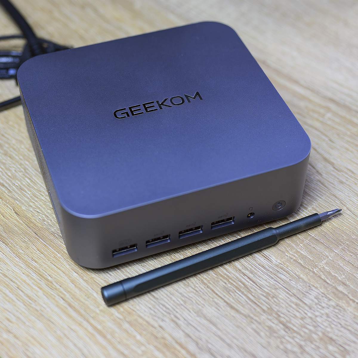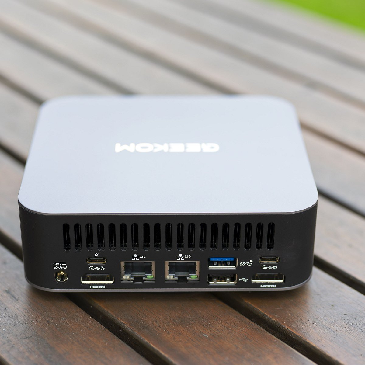 The anodised metal chassis, finished in a subtle matte grey, feels both tough and elegant, with reinforced corners and clean seams that resist fingerprints. The subtle Geekom logo and minimalist design ensure it fits well into both professional and home environments, while the smart ventilation design maintains efficient airflow without compromising aesthetics.