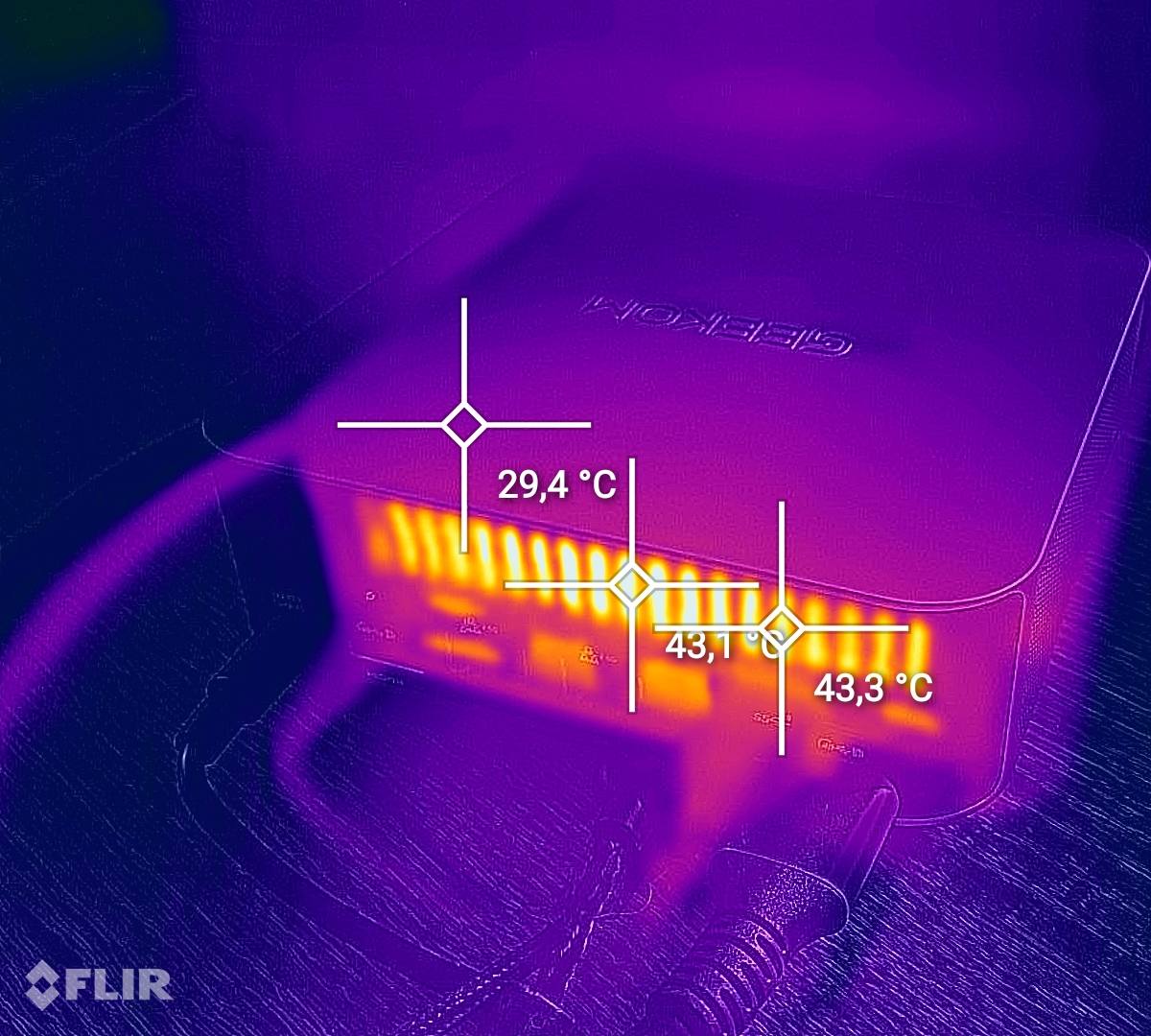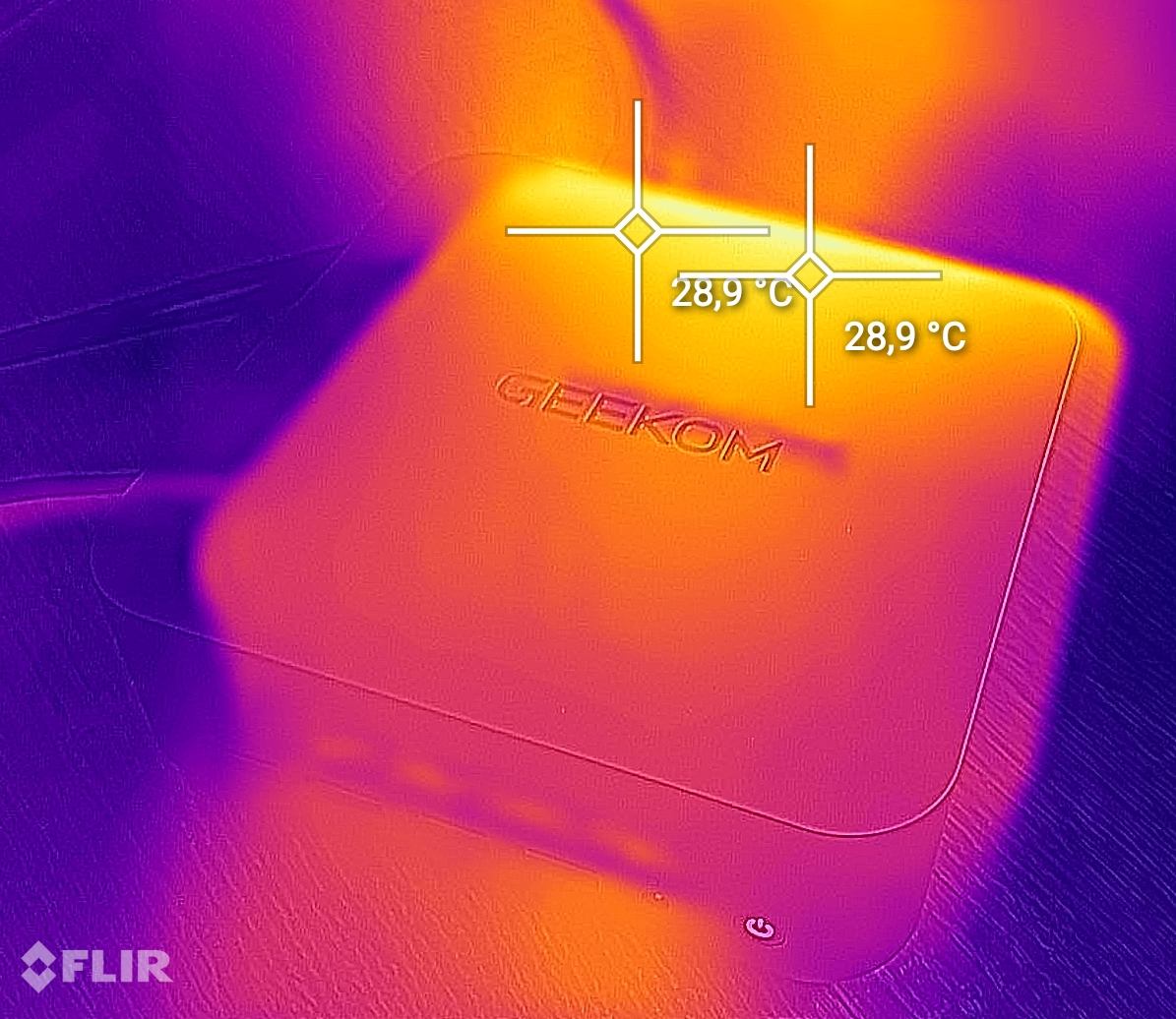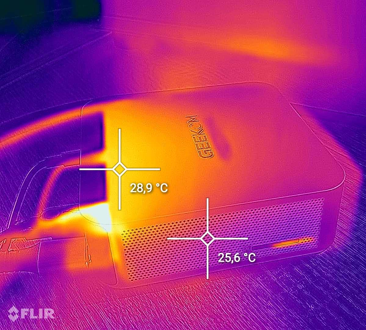 The top cover doesn’t exceed 35°C in temperature, with the highest reading around the vent at approximately 44°C. If you’re working on long, intensive tasks, the CPU may throttle slightly to maintain temperature control, but for most users, this won’t be a significant issue. Overall, the cooling solution strikes a good balance between performance and noise, making it suitable for both home and office environments.