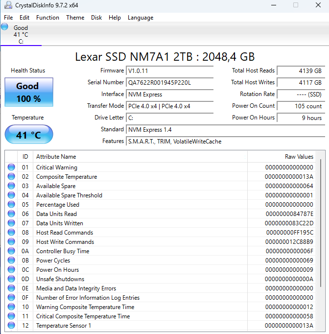 Although Geekom doesn’t list the make and model of the storage drive in any of its marketing materials, we can see in various software utilities that our drive is a 2 TB Lexar NQ7A1 SSD identified as model number LNQ7A1X002T.