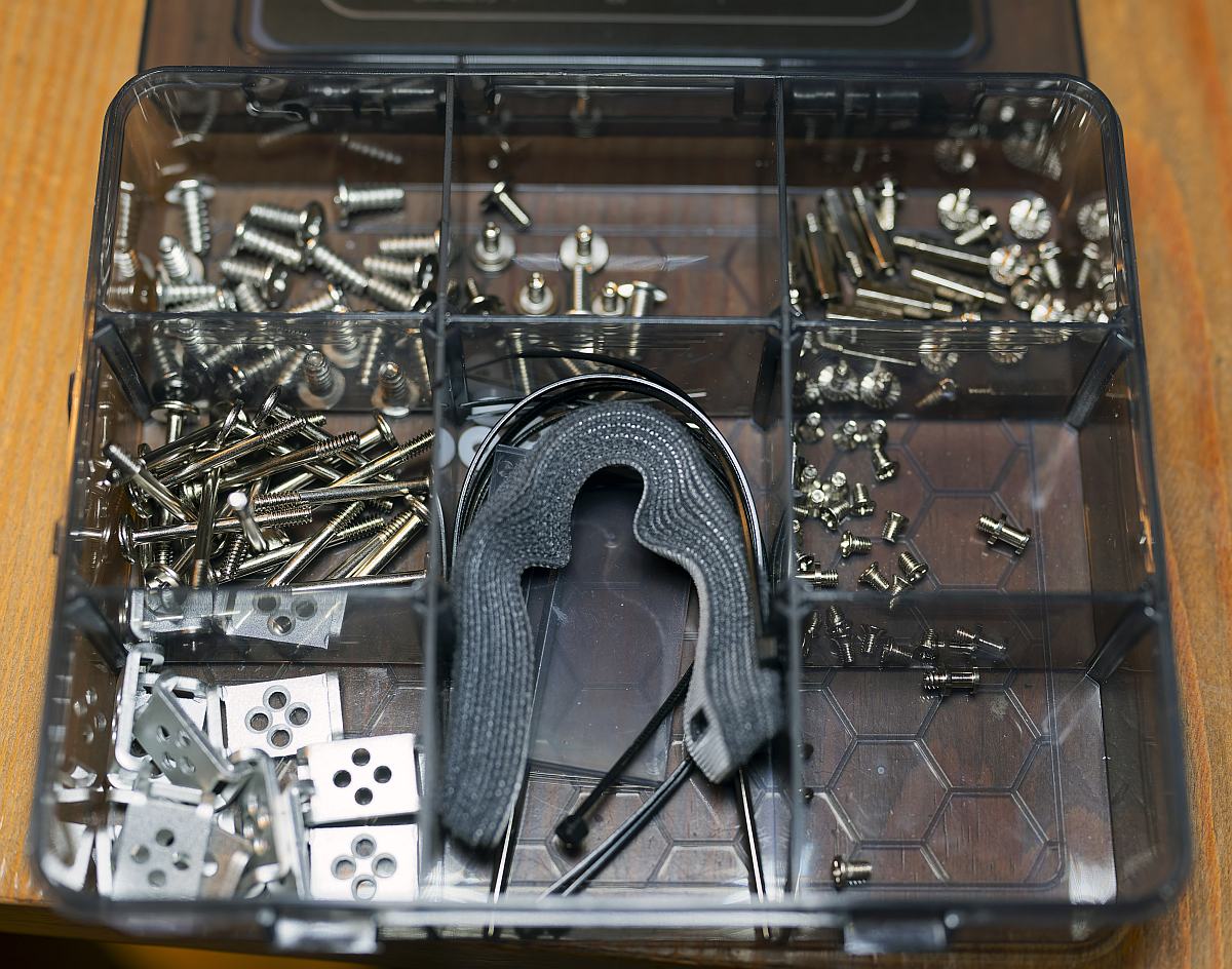 InWin also includes a neatly organised accessory case that holds screws, standoffs, cable ties and the distinctive aluminium cable‑management brackets. These extras reinforce the chassis’s reuse-centric philosophy, encouraging multiple rebuilds and custom layouts over the Shift’s lifetime.