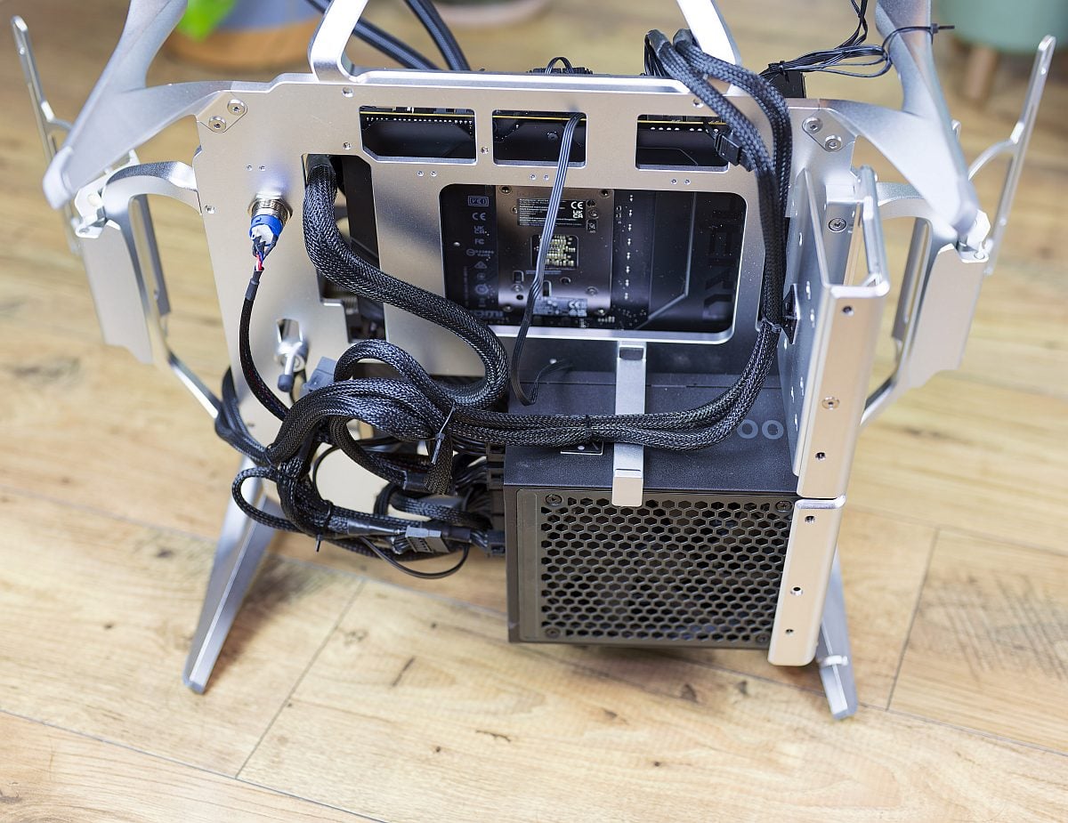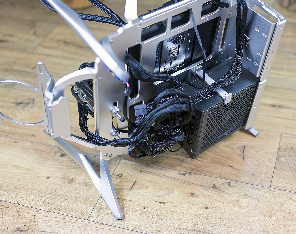 BTF‑style or well‑planned cable sets pay dividends, since there are no panels to hide excess slack or untidy runs on the component side. Supplied aluminium cable‑management clips and a mix of zip and Velcro ties are helpful and it’s not overly difficult to achieve a tidy rear layout.