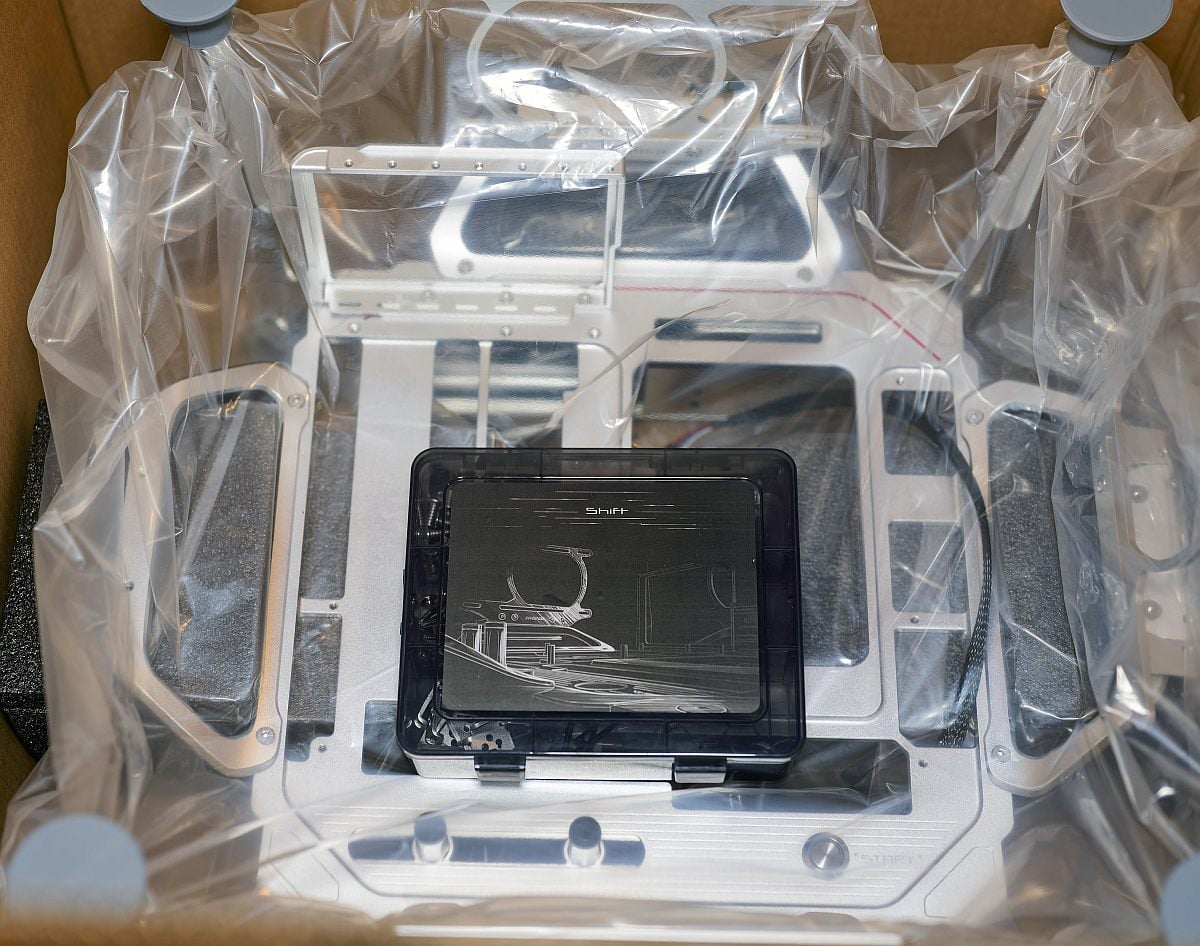 The Shift arrives in a large but understated cardboard carton, which feels modest given the chassis’s premium nature, but everything inside is especially well packaged.