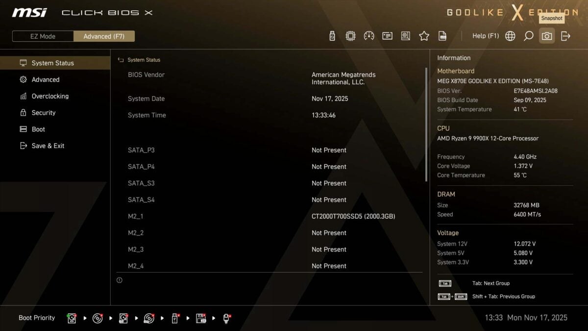 | MEG X870E Godlike X | MEG X870E Godlike | |