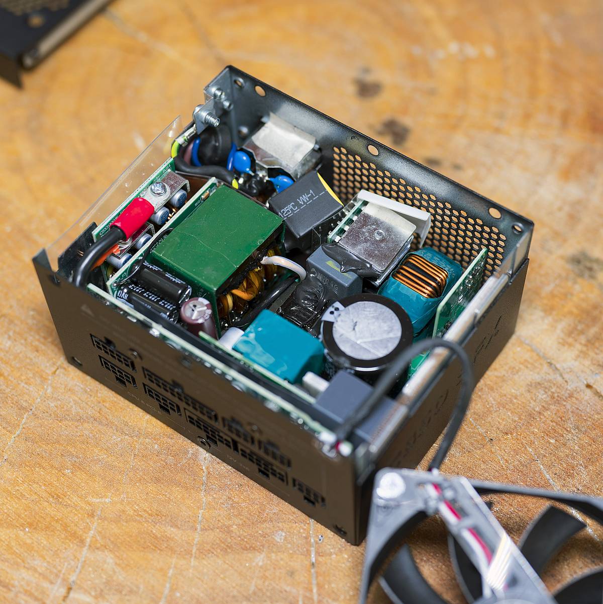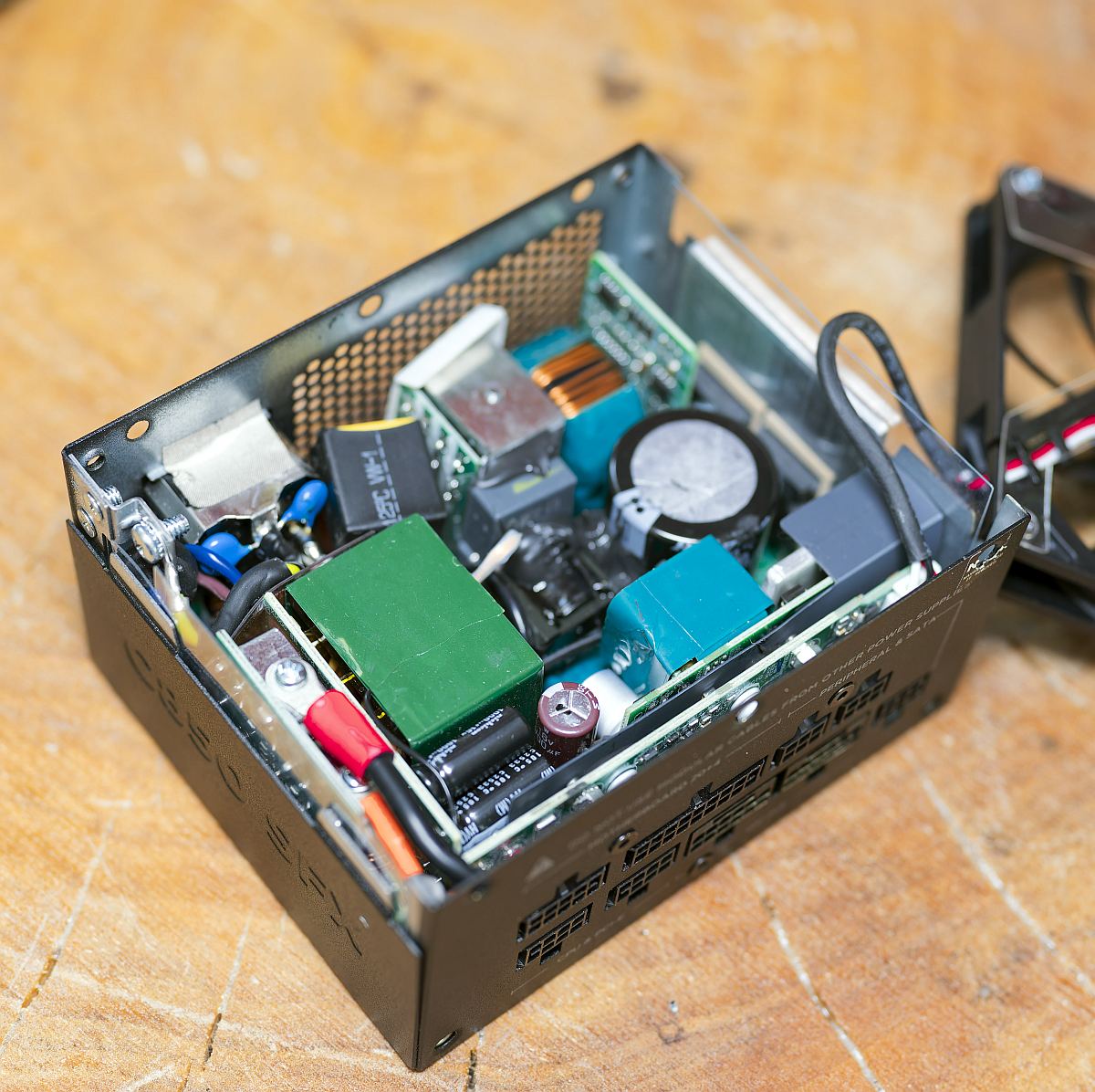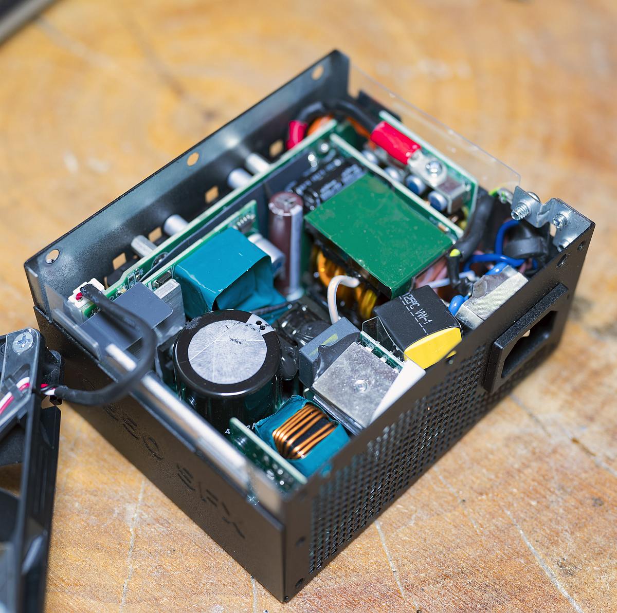 As for the secondary side, you find synchronous rectification. The minor rails tap into DC-DC converters from the 12V. As for the capacitors, they’re all Japanese, so that’s great.
